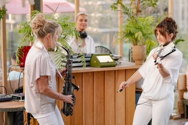 Get ready to be dazzled by our vibrant female musical trio, where the beats of a DJ blend seamlessly with the enchanting sounds of an electric violin and the smooth melodies of a saxophonist. This female band brings a unique and exhilarating energy to every music event, captivating audiences with their diverse talents. Whether it’s an upbeat party atmosphere or a more sophisticated setting, they know how to create an unforgettable experience that keeps everyone dancing and smiling.